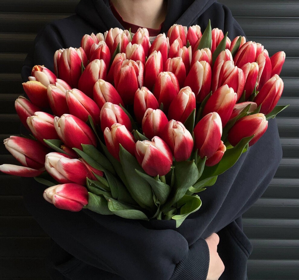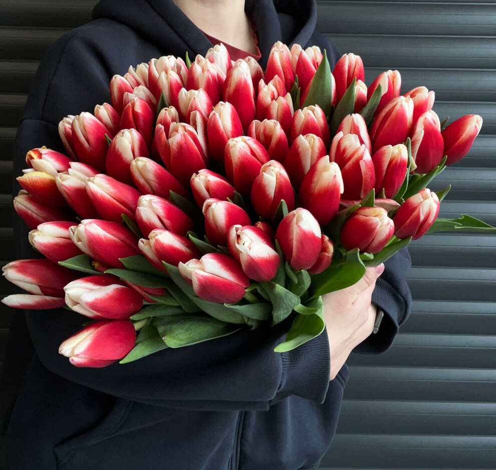 Тюльпан красно-белый - цена за 1 штуку.